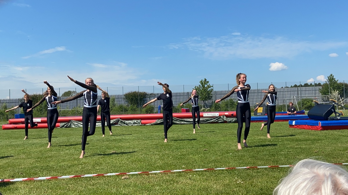 Den 6/6 kom vi endelig til opvisning igen. Det foregik på Solrød Skole på en boldbane, hvor Solrød Gymnastikforening holdte lokal opvisning. Der var godt humør, godt vejr og massere mennesker. Opvisningen klarede de helt uden problemer og alt kørte som smurt.